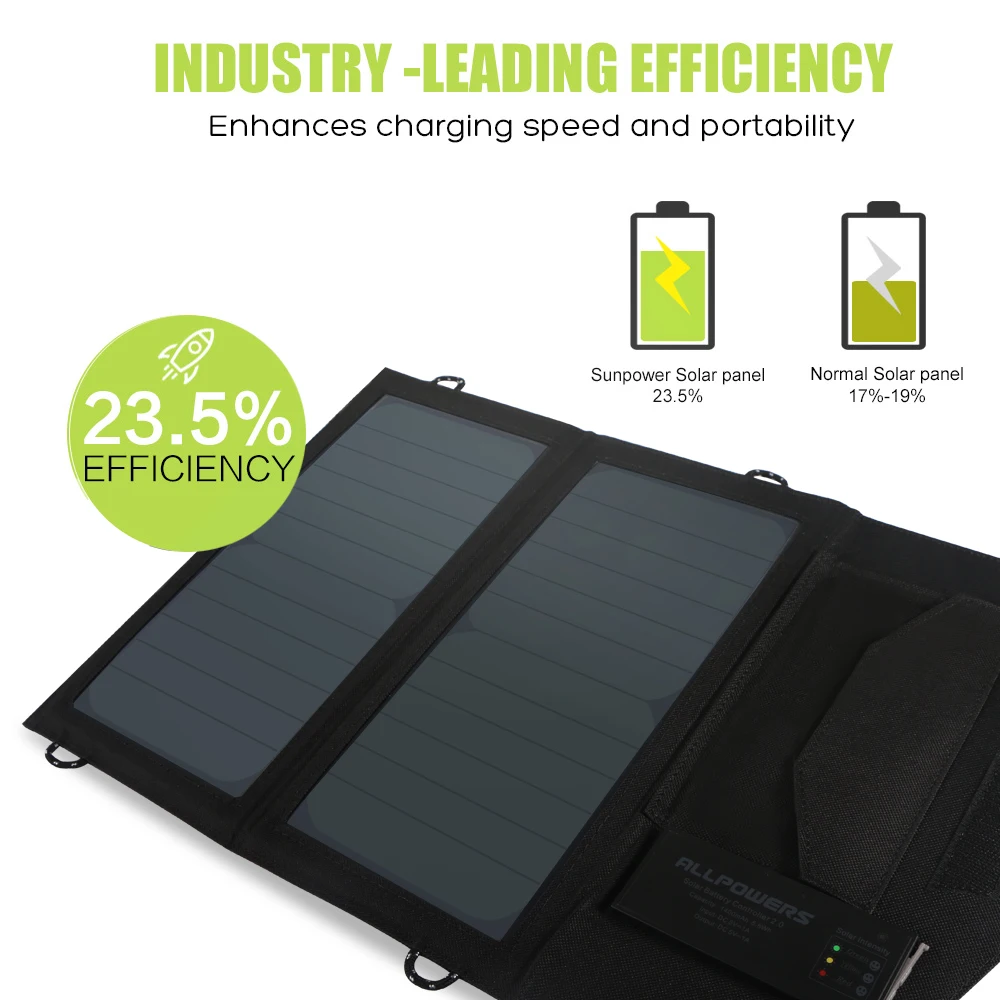 ALLPOWERS Solar Panel Charger Dual USB 5V2A Portable Solar Panel Phone Charger for iPhone iPad Samsung Huawei Outdoor Camping